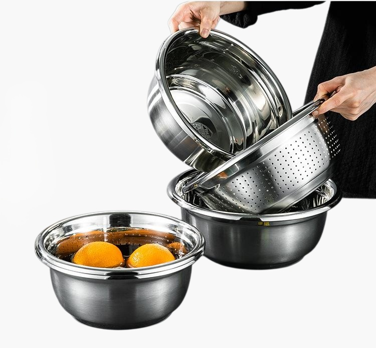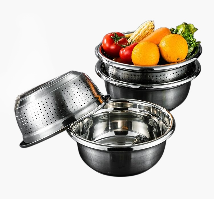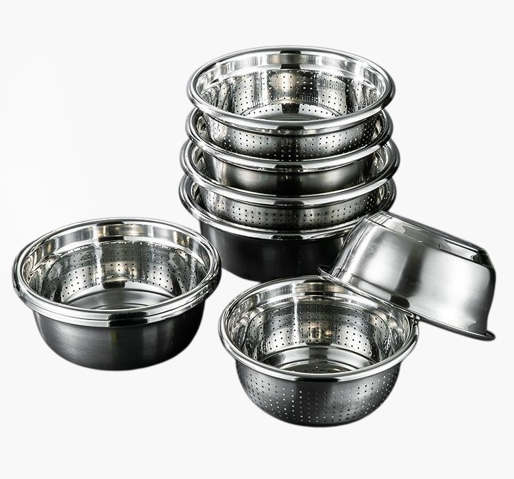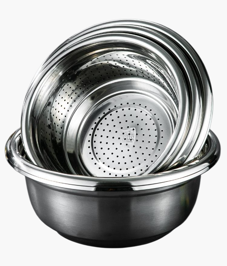 스테인리스강 여과 대야, 위생적이고 내구성 뛰어남, 녹슬지 않음, 다양한 용도 사용, 세척 용이, 주방 필수품